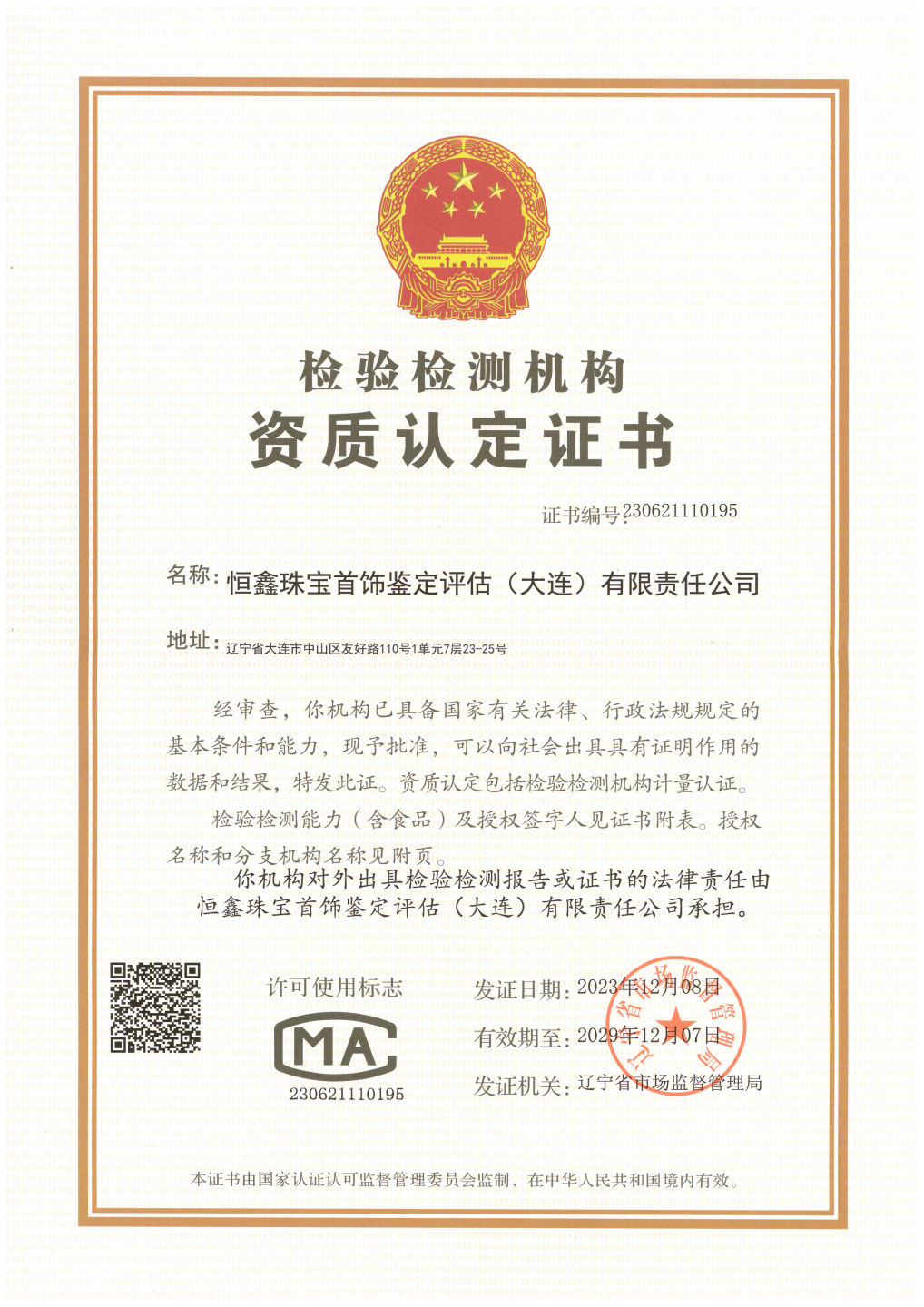 ——恒鑫珠宝首饰鉴定评估(大连)有限责任公司